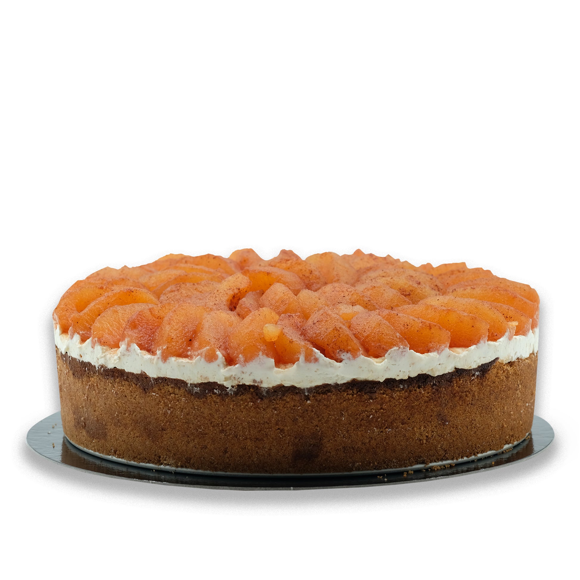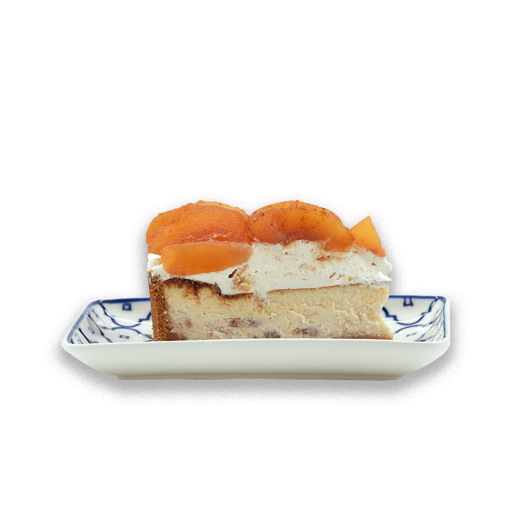 APPLE CINNAMON CHEESECAKE Frugtagtig cheesecake med flødecreme, stykker af æble og en smag af kanel.